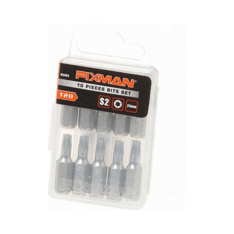 Bit odvijač T27X25mm 10 kom FIXMAN (N3405) ima standardnu izvedbu za vijke s križom Torx, sa šesterokutnim prihvatom 1/4″. Duljina odvijača je 25 mm.