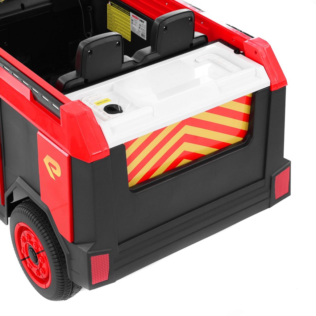Vatrogasno vozilo je robusne konstrukcije, može nositi do 30 kg , a ima mekano sjedalo, stabilnu bazu i robusne gume. Zahvaljujući kompaktnim dimenzijama (104 × 57,5 ​​× 45 cm), lako se može pohraniti u garaži ili dječjoj sobi. Dizajn se temelji na pravom vatrogasnom vozilu – s čvrstim prednjim dijelom, čistim linijama i živim bojama.