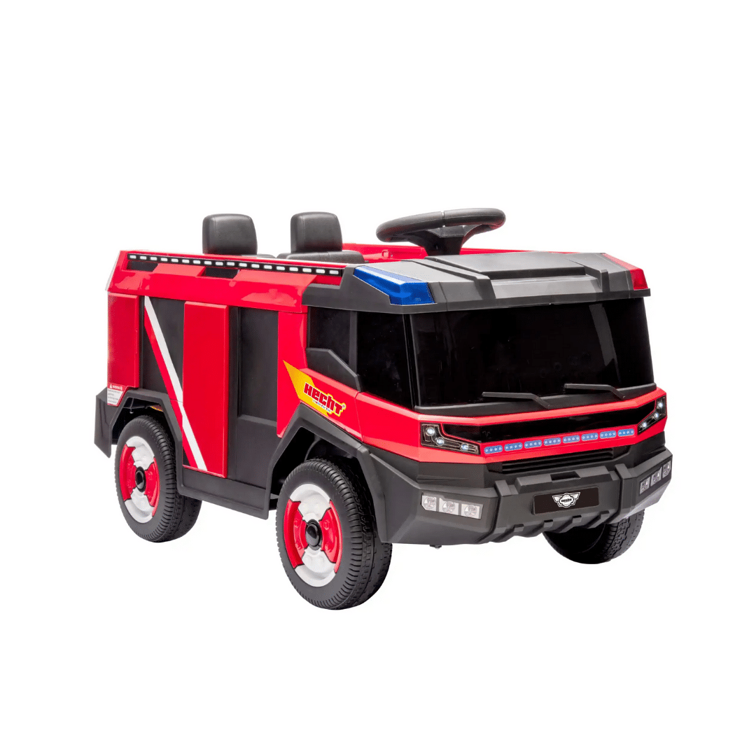 Osvijetljena prednja svjetla, bočna LED svjetla i trepćuće plavo/crveno svjetlo čine da vozilo izgleda kao pravo vozilo za hitne slučajeve. Sirena i vanjski interfon pružaju autentične zvukove za hitne slučajeve, dok integrirani radio s USB, Bluetooth i AUX priključcima omogućuje reprodukciju glazbe ili audioknjiga. Svaka vožnja postaje prava vatrogasna avantura.