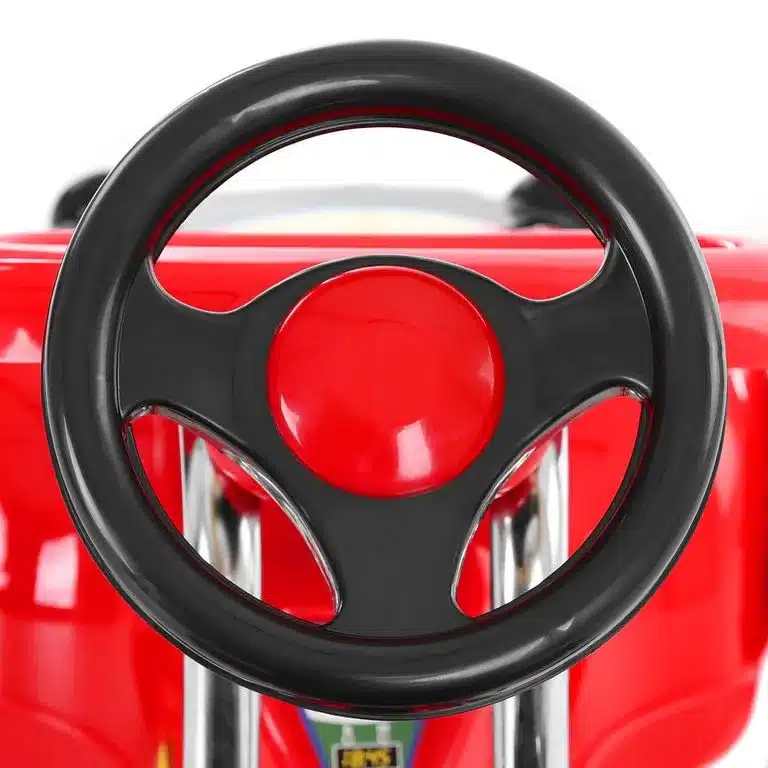 Dječje vozilo ima čvrsti okvir za pouzdanu stabilnost i robusne kotače za otpornost na probijanje. Veliko sjedalo pruža dobru potporu, a upravljanje se vrši pomoću volana. Priloženi štitnik lanca sprječava da se vaša djeca zapetljaju u njemu.