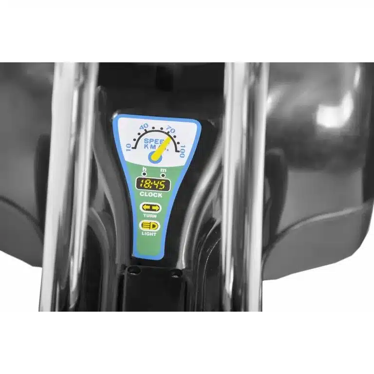 Dječje vozilo ima čvrst okvir za pouzdanu stabilnost i robusne kotače otporne na probijanje. Veliko sjedalo pruža dobru potporu, a upravljanje se vrši putem upravljača. Zatvoreni štitnik lanca sprječava da se djeca zapetljaju u lanac.