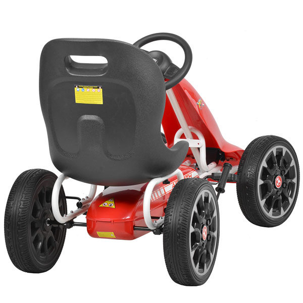 Gumene gume su prikladne za cestovnu i terensku upotrebu. Karting vozila na pedale imaju lančani pogon i ručnu kočnicu na stražnjoj osovini. Mogu se kretati naprijed i nazad, a njima se upravlja pomoću pedala .