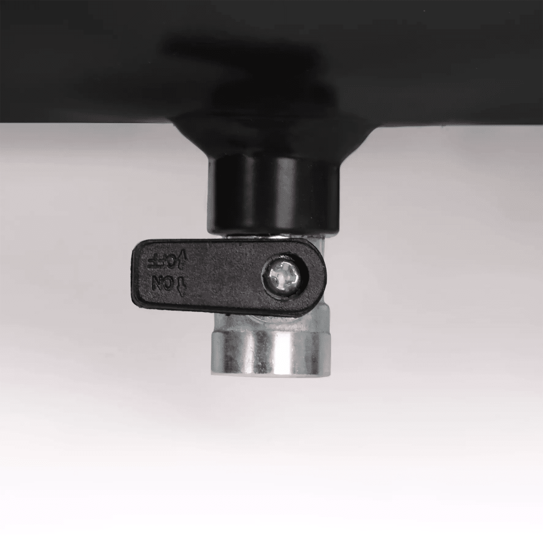 Opremljen je manometrom i brzootpuštajućom spojnicom za kontrolirani i neregulirani tlak.