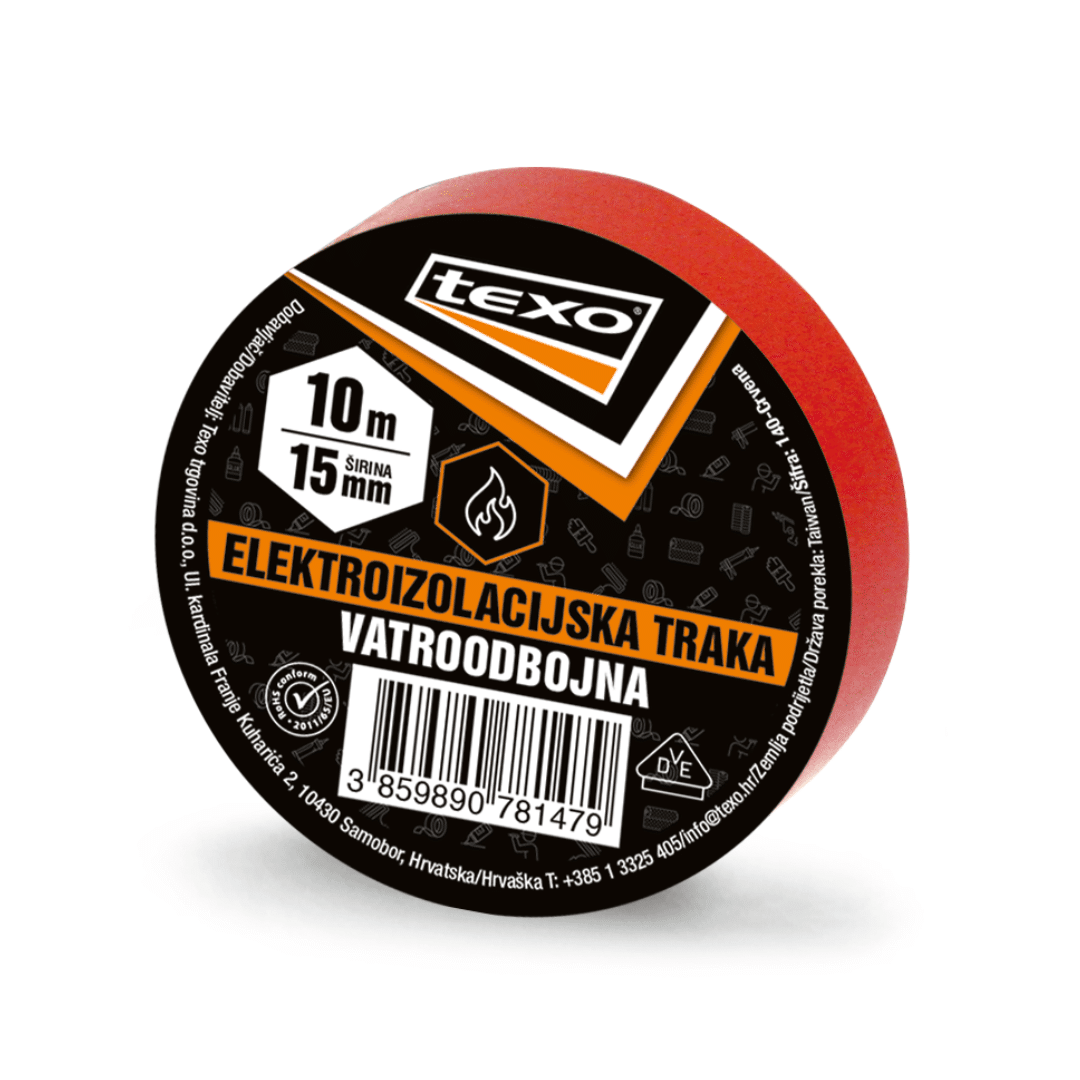 Elektroizolacijska traka crvena TEXO izrađena je od mekanog polivinilklorida. Idealna je za izolaciju električnih žica i drugih materijala koji provode električnu energiju. Odlično prianja i jednostavno se koristi.