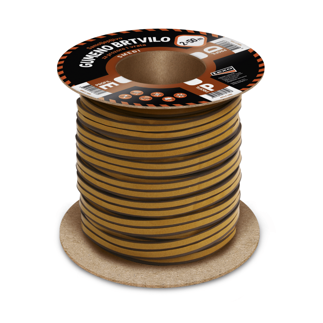 Gumeno brtvilo P-profil bijela/smeđa 2×50 m TEXO koristi se za zatvaranje manjih procjepa na prozorima i vratima. Lako se primjenjuju i mogu se brzo ukloniti radi popravka i zamjene.