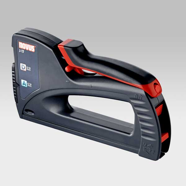 Klamerica Tip J 17 NOVUS napravljena od ABS plastike za opću upotrebu. Korištenjem mehanizma za pomicanje s prednje strane, klamerica se može lako podesiti za upotrebu finih i ravnih žičnih spojnica. Klamerica ima ručku za zaključavanje kada nije u uporabi i prozor za provjeru spajalica. Nadalje, opremljena je i sustavom za brzo punjenje, mehanizmom na dnu za jednostavno punjenje spajalica sa sigurnosnom bravom. Nadalje, ergonomska ručka mekog rukohvata osigurava udobnost u radu. Klamerica ima i kontrolu napajanja, odnosno udarni regulator za ručno prilagođavanje materijala. Klamerica se puni spajalicama do 14 mm, točnije spajalice tip A 53 i D 53.