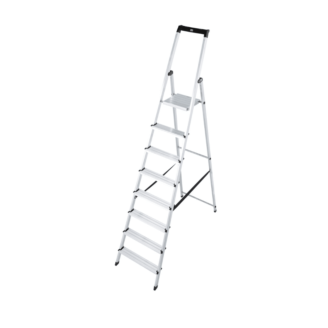 Aluminijske kućne ljestve 8 gazišta su vrsta ljestvi koje se koriste za radove na visini u kućanstvima i manjim radovima.One su idealne za korištenje u kućanstvima, stanovima, vrtovima, radionicama i manjim radovima na visini (82771).