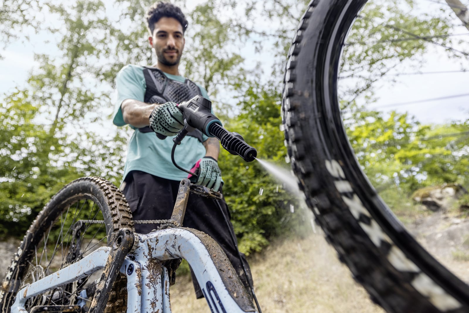 Crijevo, pištolj za okidanje i mlaznica mogu se jednostavno i sigurno pohraniti na uređaj radi uštede prostora. Pribor vam je uvijek pri ruci, čak i kada ste u pokretu. Punjiva kolica za vodu od 12 l dostupna su kao dodatna oprema.