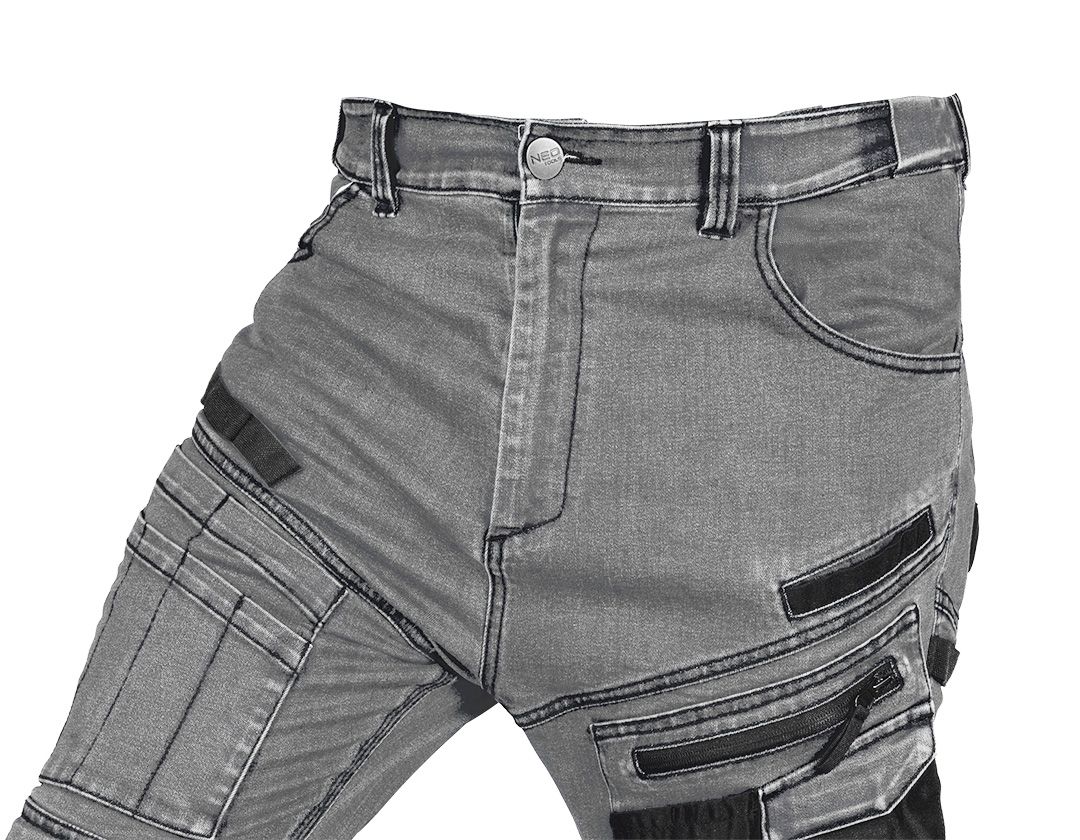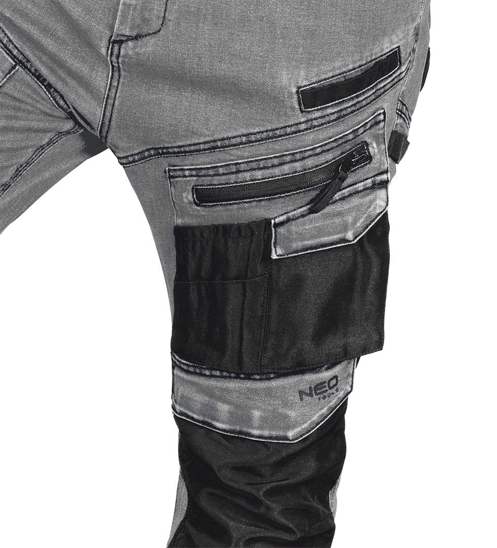 NEO TOOLS DENIM radne hlače kombiniraju funkcionalnost, izdržljivost i dobar izgled, idealne za profesionalce koji cijene kvalitetu i udobnost. Izrađene od izdržljive traper tkanine od 400 g/m² (82% pamuk, 16% poliester, 2% elastan), pružaju udobnost i otpornost na tešku upotrebu . Ojačanja od Oxford tkanine na koljenima i potkoljenicama povećavaju izdržljivost, dok džepovi za štitnike za koljena poboljšavaju ergonomiju pri radu u klečećem položaju.