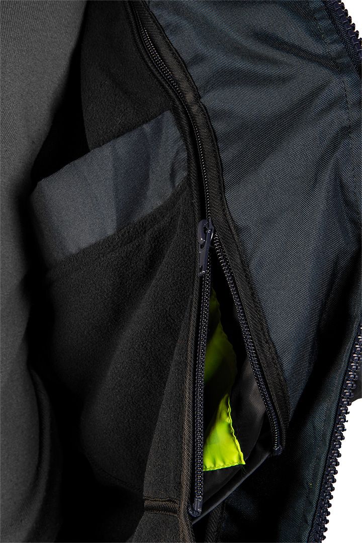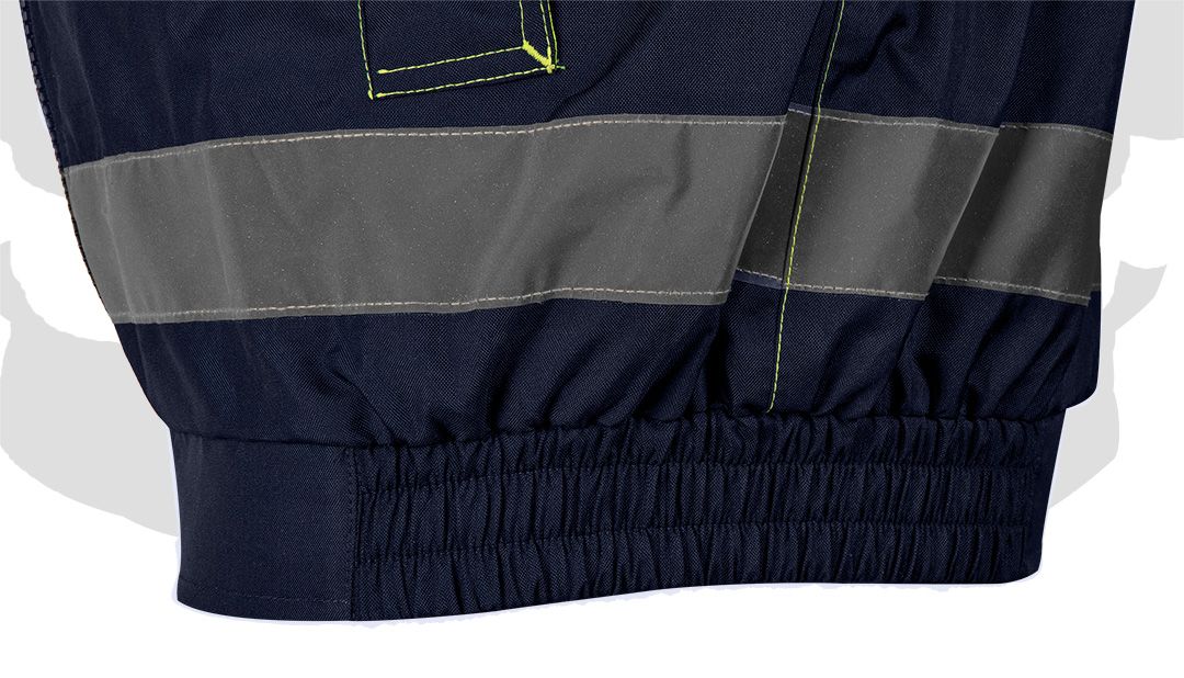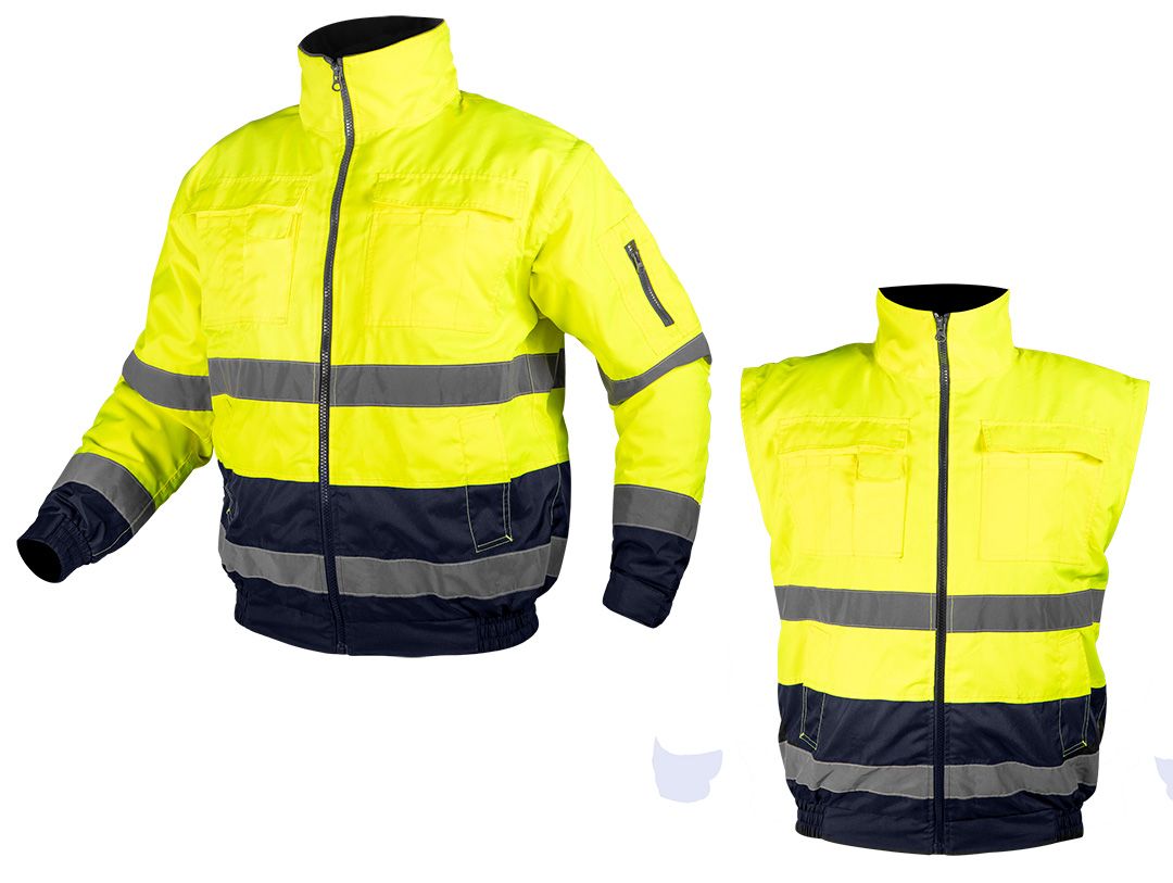 Izrađena od izdržljive 300D Oxford tkanine , jakna pruža otpornost na oštećenja i habanje, a istovremeno jamči udobnost. Njena žuto-mornarsko plava boja i visoka vidljivost , koje zadovoljavaju zahtjeve klase 3 prema standardu EN ISO 20471, značajno povećavaju sigurnost radnika, čineći ih vidljivima čak i u teškim uvjetima osvjetljenja.