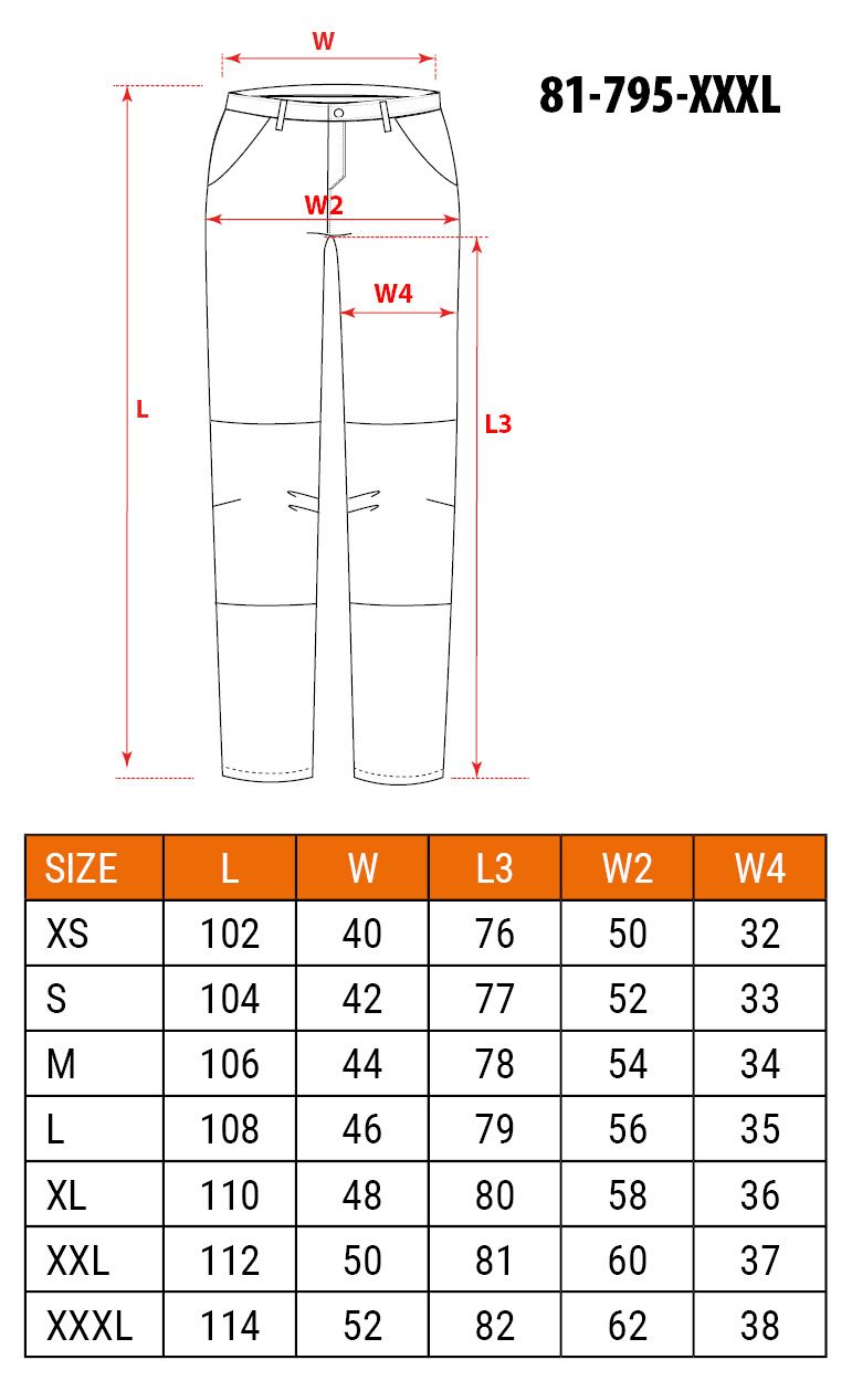 Izrađene su od izdržljive keper tkanine od 240 g/m², s udjelom pamuka od 58% te poliestera (40%) i elastana (2%), pružaju udobnost i izdržljivost za intenzivnu upotrebu .