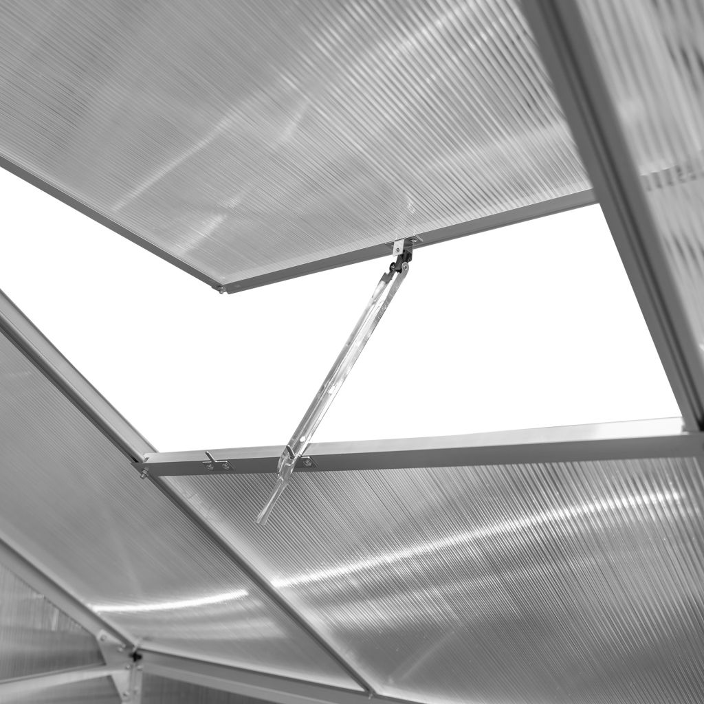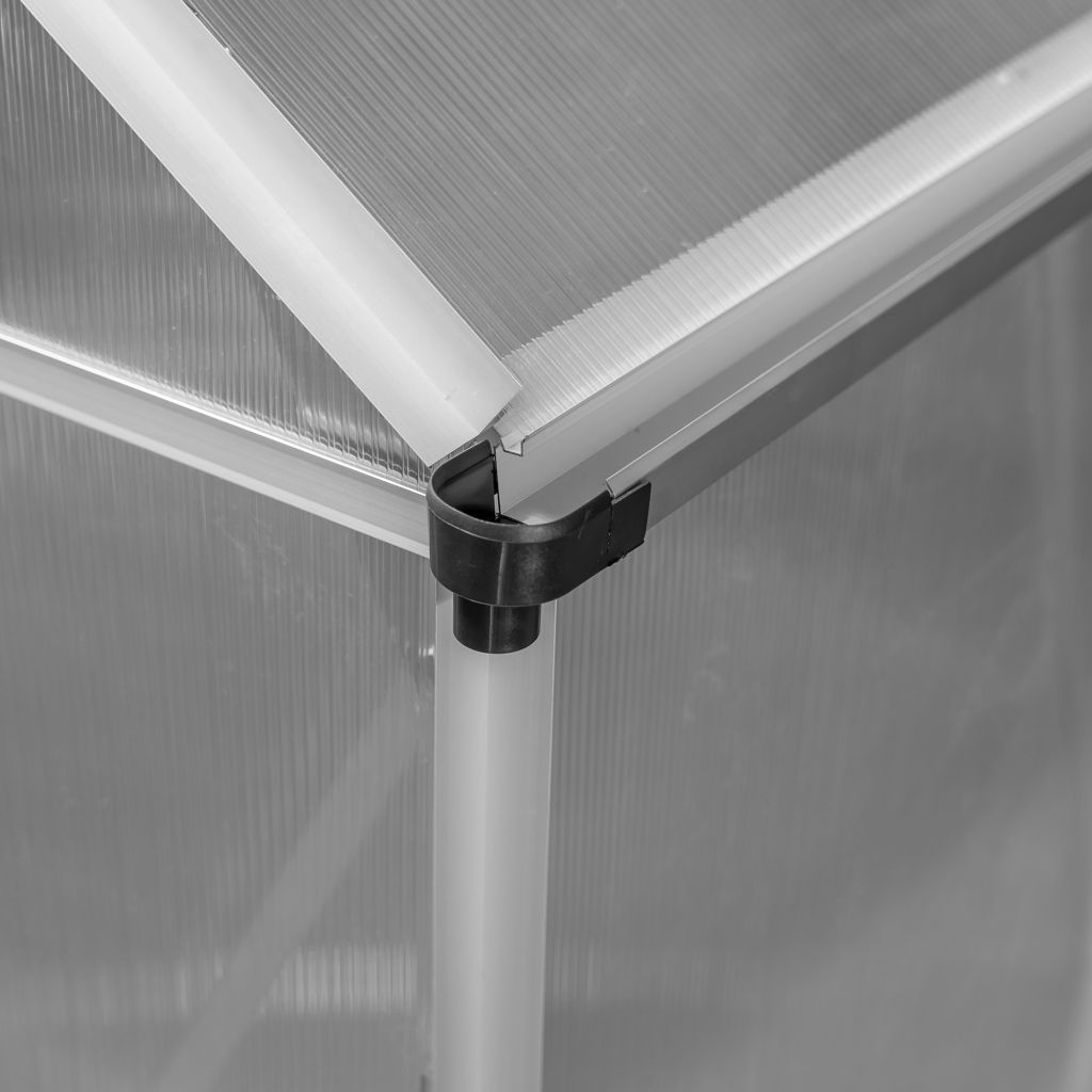 Plastenik RURIS 3 SEC ima izdržljivu bazu od pocinčanog čelika, dvostruke polikarbonatne stijenke i aluminijske profile. Cijela konstrukcija pruža UV zaštitu, stvarajući stabilnu i povoljnu mikroklimu za razvoj biljaka, bez obzira na vanjske vremenske uvjete.
