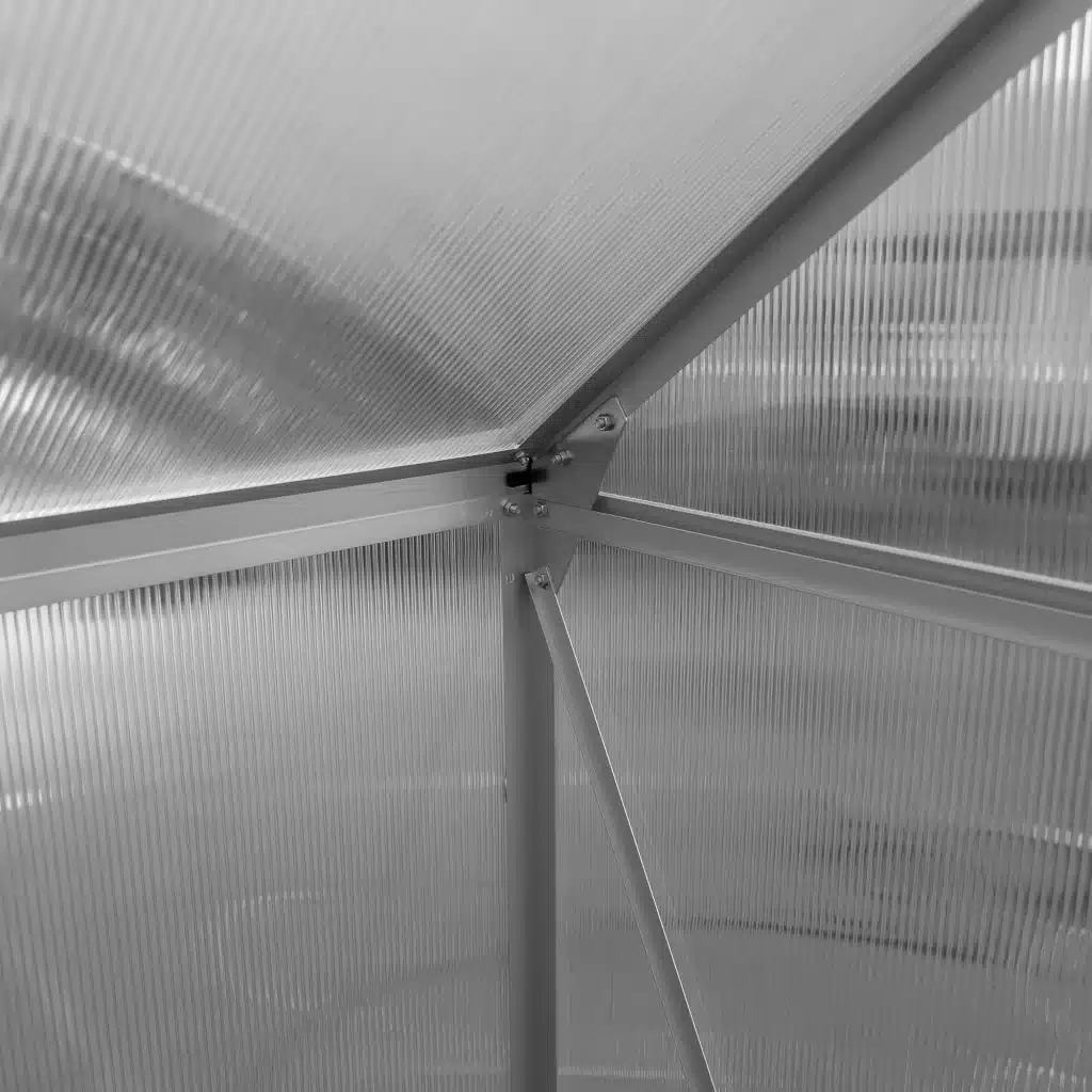 Plastenik RURIS 4 SEC ima izdržljivu bazu od pocinčanog čelika, dvostruke polikarbonatne stijenke i aluminijske profile. Cijela konstrukcija pruža UV zaštitu, stvarajući stabilnu i povoljnu mikroklimu za razvoj biljaka, bez obzira na vanjske vremenske uvjete.