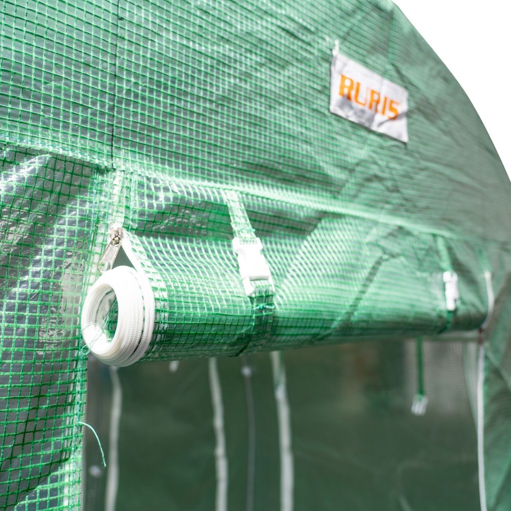 Dva vrata s patentnim zatvaračem na plasteniku RURIS UP 450 (sprijeda i straga) nude jednostavan i brz pristup unutrašnjosti bez ugrožavanja zaštite biljaka. Sustav zatvaranja s patentnim zatvaračem omogućuje potpuno otvaranje vrata za maksimalnu ventilaciju tijekom vrućih dana ili tijekom radova na održavanju. Kada su zatvorena, pomažu u održavanju kontroliranog okruženja, štiteći usjeve od hladnog propuha, prašine i štetnika.