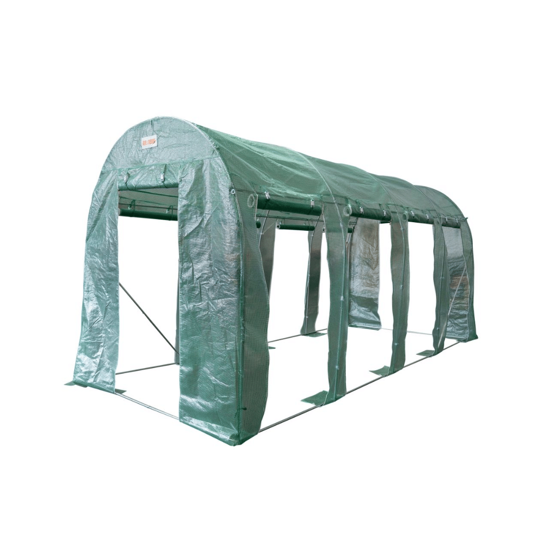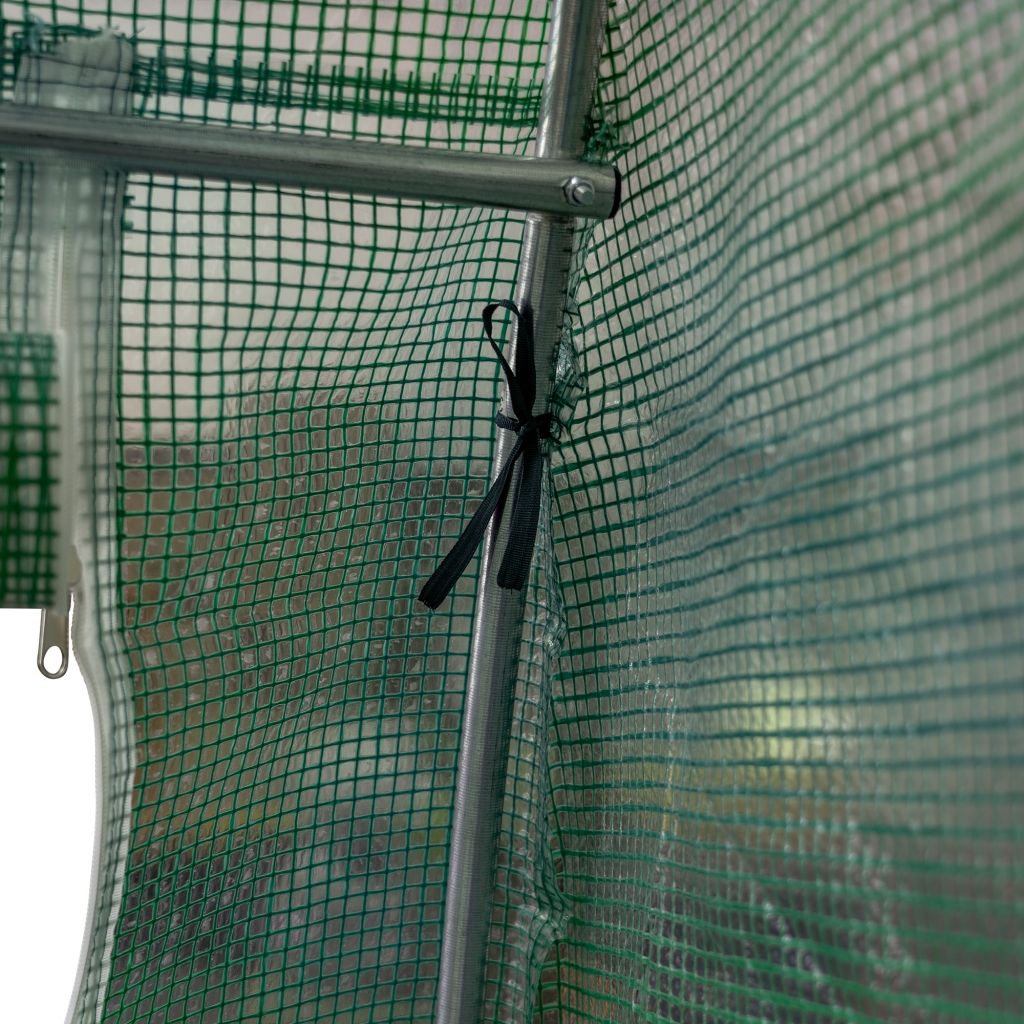 Zahvaljujući čvrstoj konstrukciji od pocinčanih metalnih cijevi ( promjera 19 mm ) i polietilenskoj mrežastoj foliji s UV zaštitom, ovaj staklenik stvara stabilnu mikroklimu koja podržava rast biljaka bez obzira na vanjske vremenske uvjete.