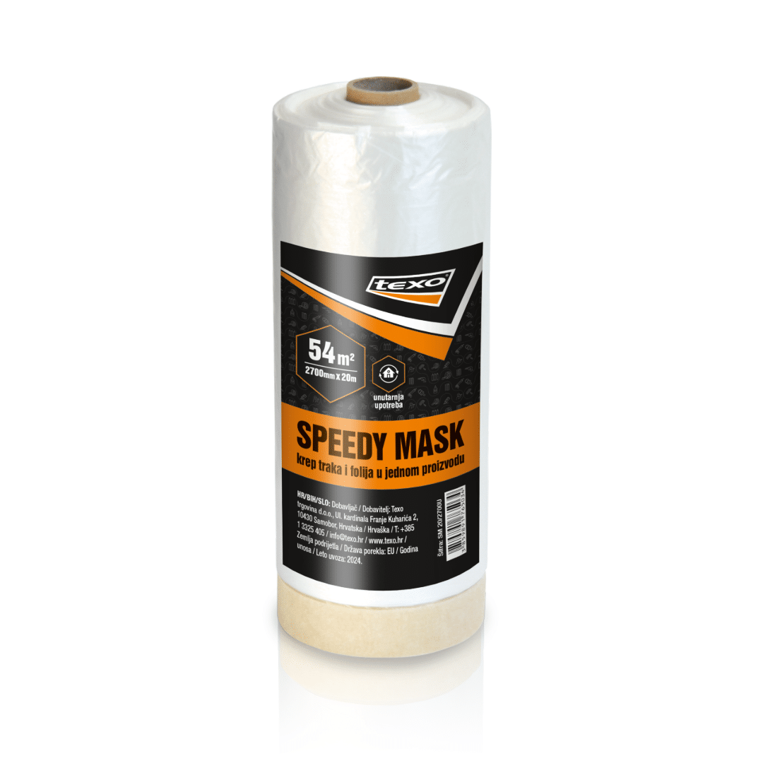 Zaštitna krep traka s folijom 20 m x 2700 mm – TEXO. Zaštitna krep traka s folijom se koristi za zaštitu interijera i pokućstva prilikom izvođenja soboslikarskih i ostalih unutarnjih radova. Folija je statički obrađena i zbog toga bolje prianja na površinu.