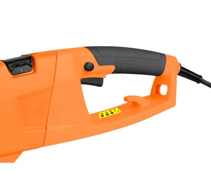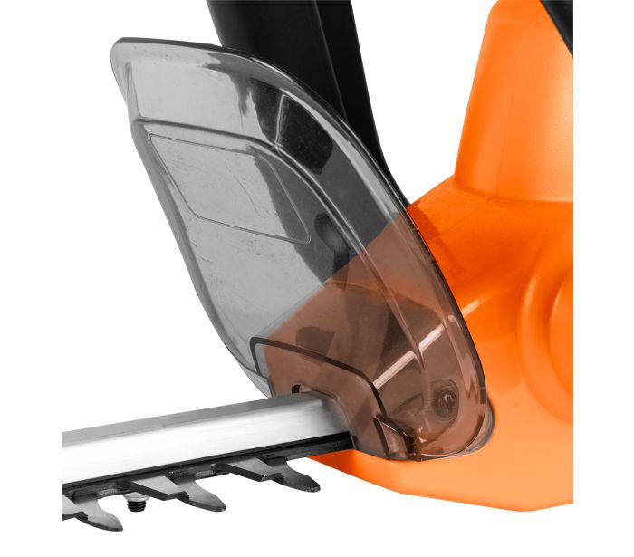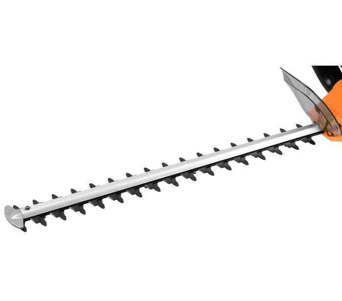 Škare za živicu rade na snazi od 550 W s oštricom duljine 46 cm, idealnom za precizno oblikovanje. Mogu rezati grane promjera do 20 mm, što ih čini vrlo učinkovitima za održavanje gustih živica. Sigurnosni prekidač, remen za rame i štitnik oštrice pružaju maksimalnu zaštitu i udobnost tijekom rada.