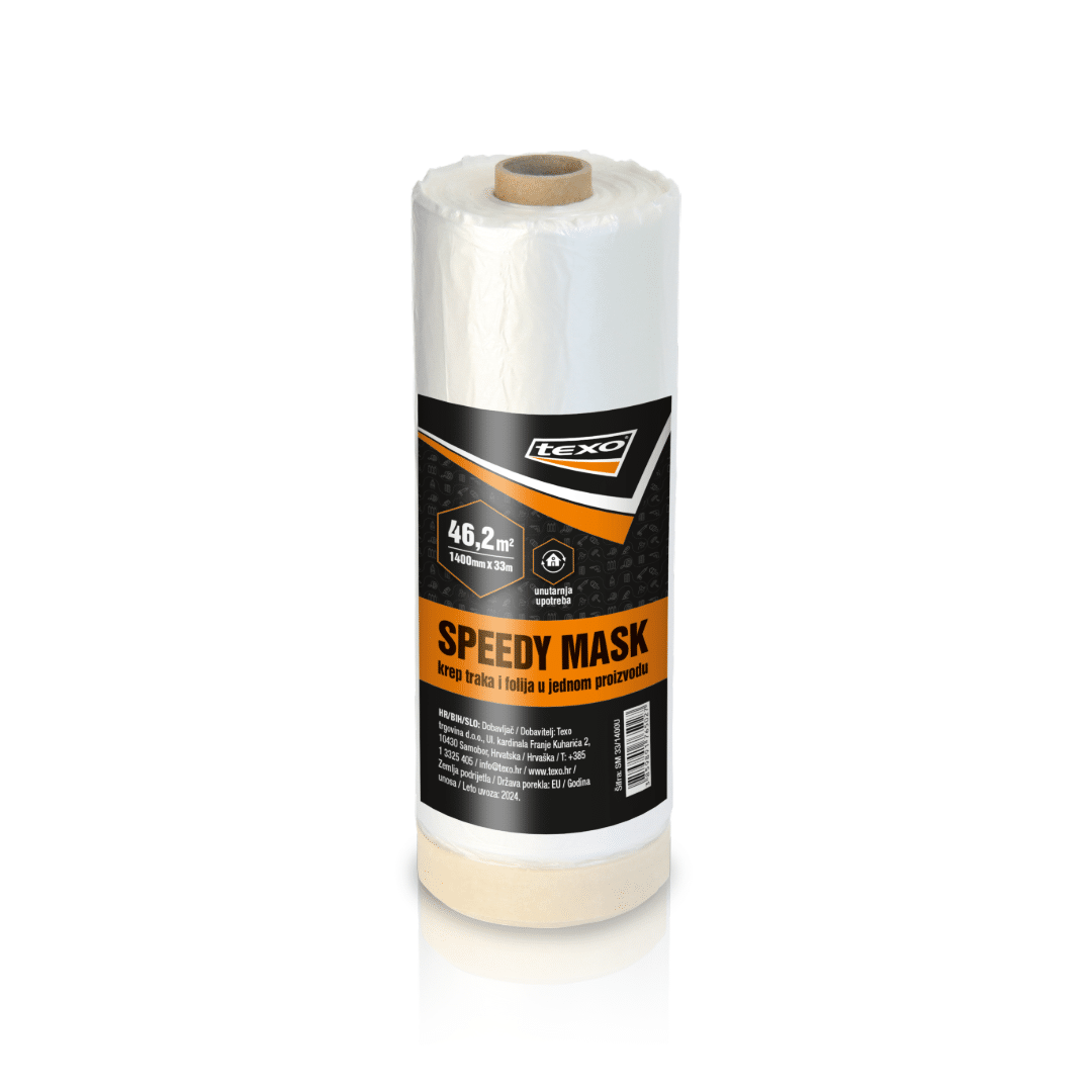 Zaštitna krep traka + folija 18,1-54 m² TEXO koriste se za jednostavniju i bržu zaštitu interijera i eksterijera prilikom soboslikarskih ili građevinskih radova.